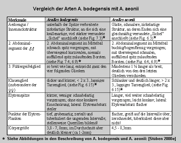 die Merkmalsunterschiede zu Acalles aeonii Wollaston 1864 in der