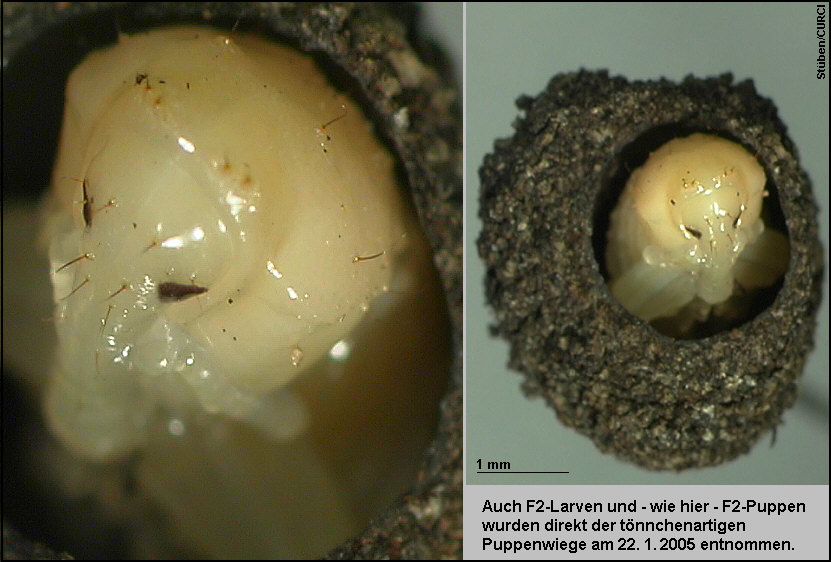 Larven, Puppen als auch Imagines mit der Nachbarart Acalles aeonii -