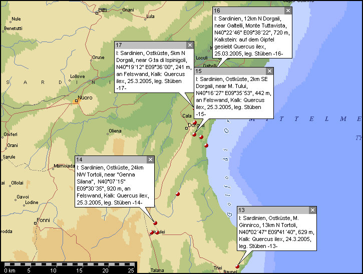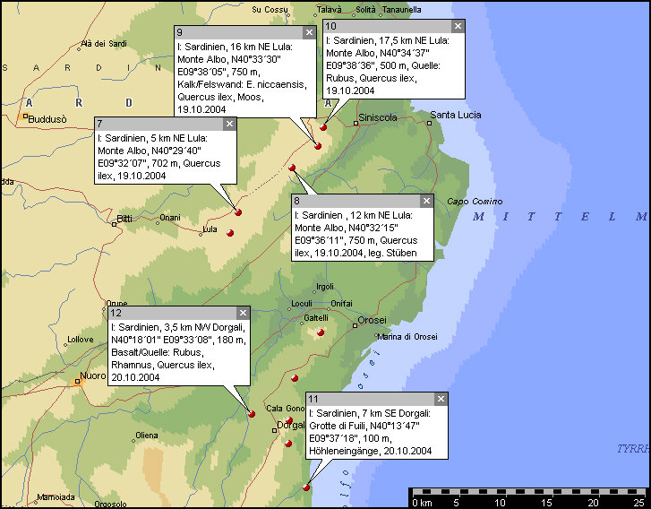 7. I: Sardegna, 5 km NE Lula: Monte Albo, N40°29´40" E09°32´07",