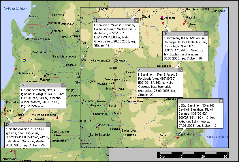 N39°20´52" E09°27´18", 110 m, Quercus ilex, Arbutus unedo, Salix, Pistacia lentiscus, 27.03.2005, leg. Stüben - 21-