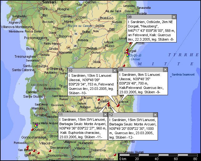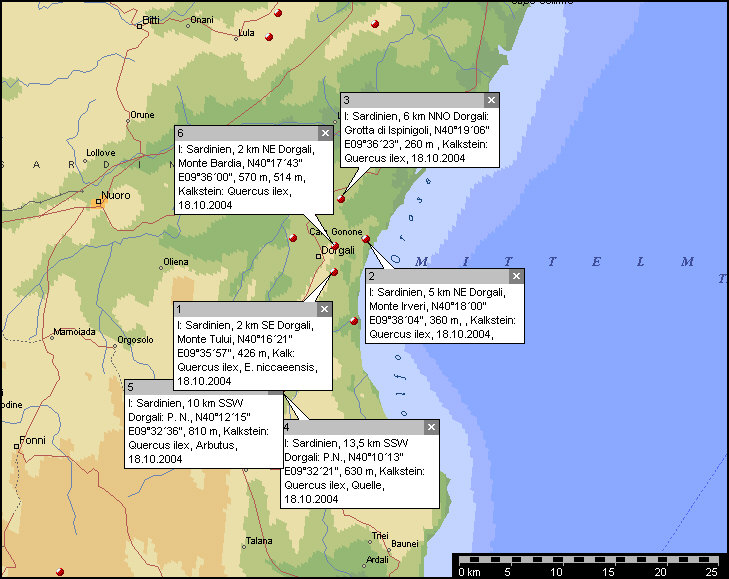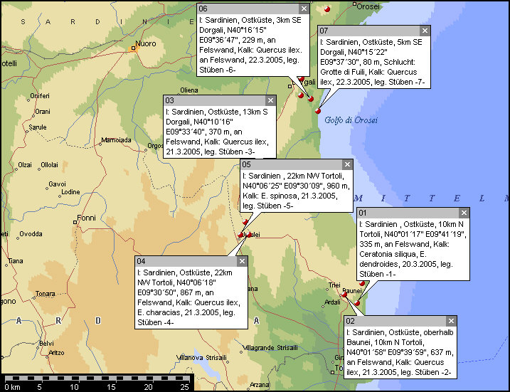 6. I: Sardegna, 2 km NE Dorgali, Monte Bardia, N40°17´43" E09°36´00",