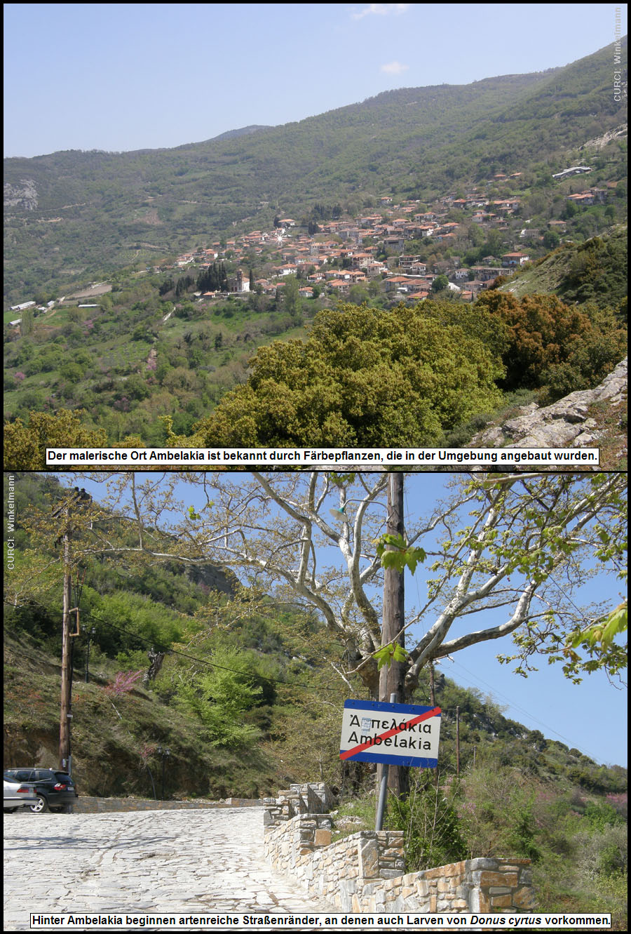 Ganz anders sah es etwas weiter südlich im Wärme begünstigten Tembi-Tal [Tab. W50.9] aus, hier grünte und blühte bereits eine Vielzahl von Bäumen und Sträuchern. Selbst das etwas höher gelegene Ambelakia (FO 10) [Tab. W50.10] bot schon einen wunderbaren Frühlingsaspekt mit reichhaltiger Insektenfauna.