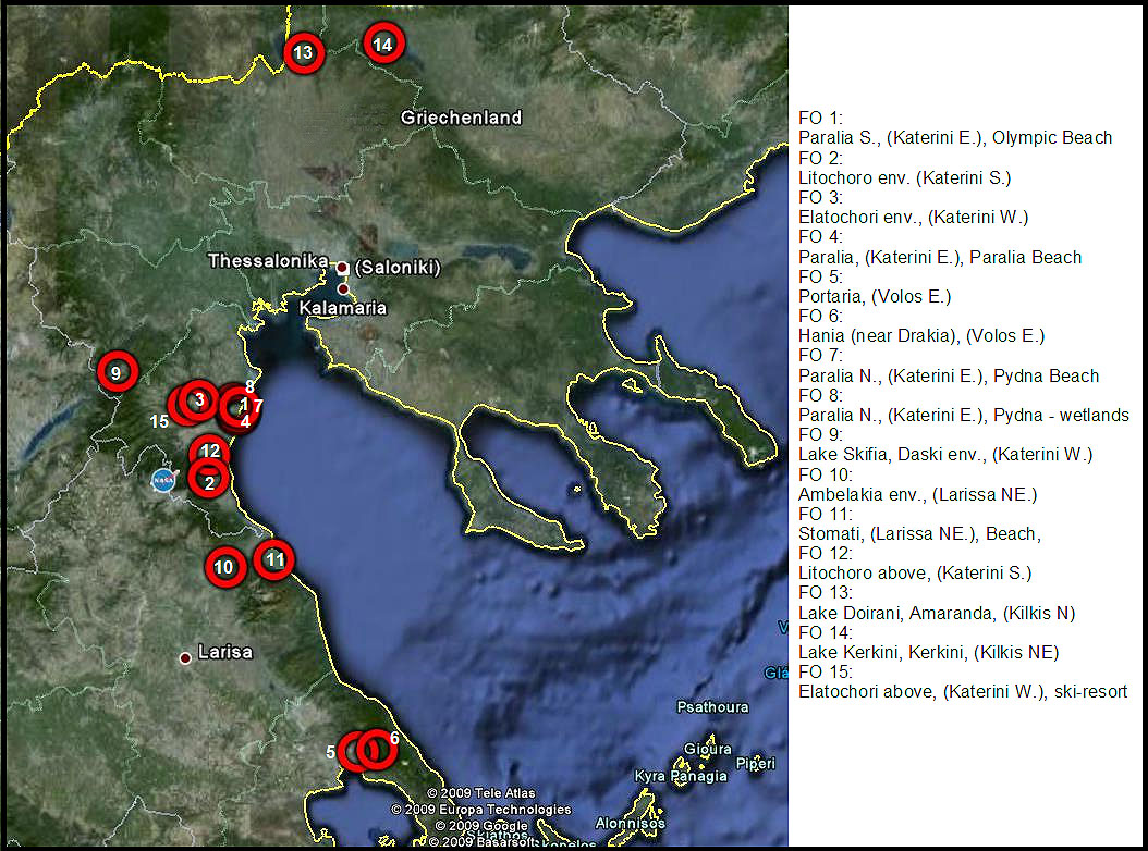 der vom 7.4. bis 18.4.2009 auf das griechische Festland führte. Eine Karte der Fundorte