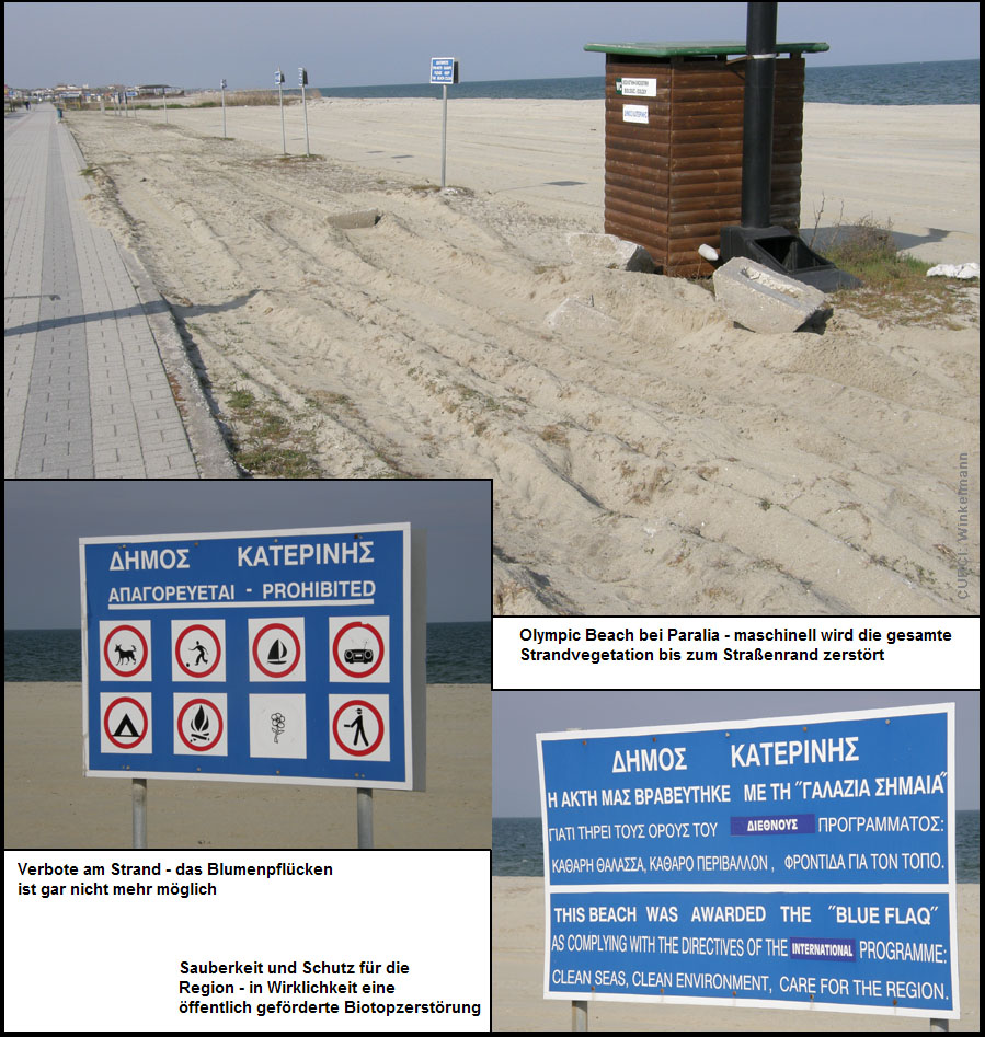 Tab. W50.3]. Hier werden einmalige Strandbiotope dauerhaft zerstört, Pflanzen und Tieren wird der Lebensraum genommen, und dann wird dieser Naturfrevel als "Sauberer Strand" hoch gelobt. Hier wäre ein besserer Austausch zwischen Tourismus- und Naturschutzvertretern dringend nötig, denn wenn die Strandbiotope weiträumig zerstört und die dort vorkommenden Arten vernichtet sind, werden die hochempfindlichen Arten mit kleinen Verbreitungsgebieten endgültig verschwinden. Sicher werden unempfindliche und weiter verbreitete Arten derartige Strandbiotope stets erneut besiedeln, aber die Artenzahlen werden immer weiter sinken. Derartige Schäden werden in der Regel auch nicht durch Entomologen verursacht [