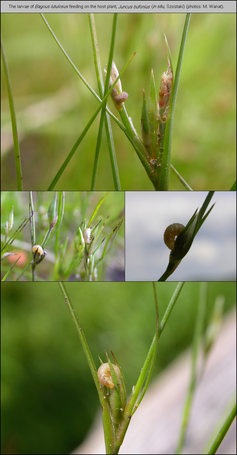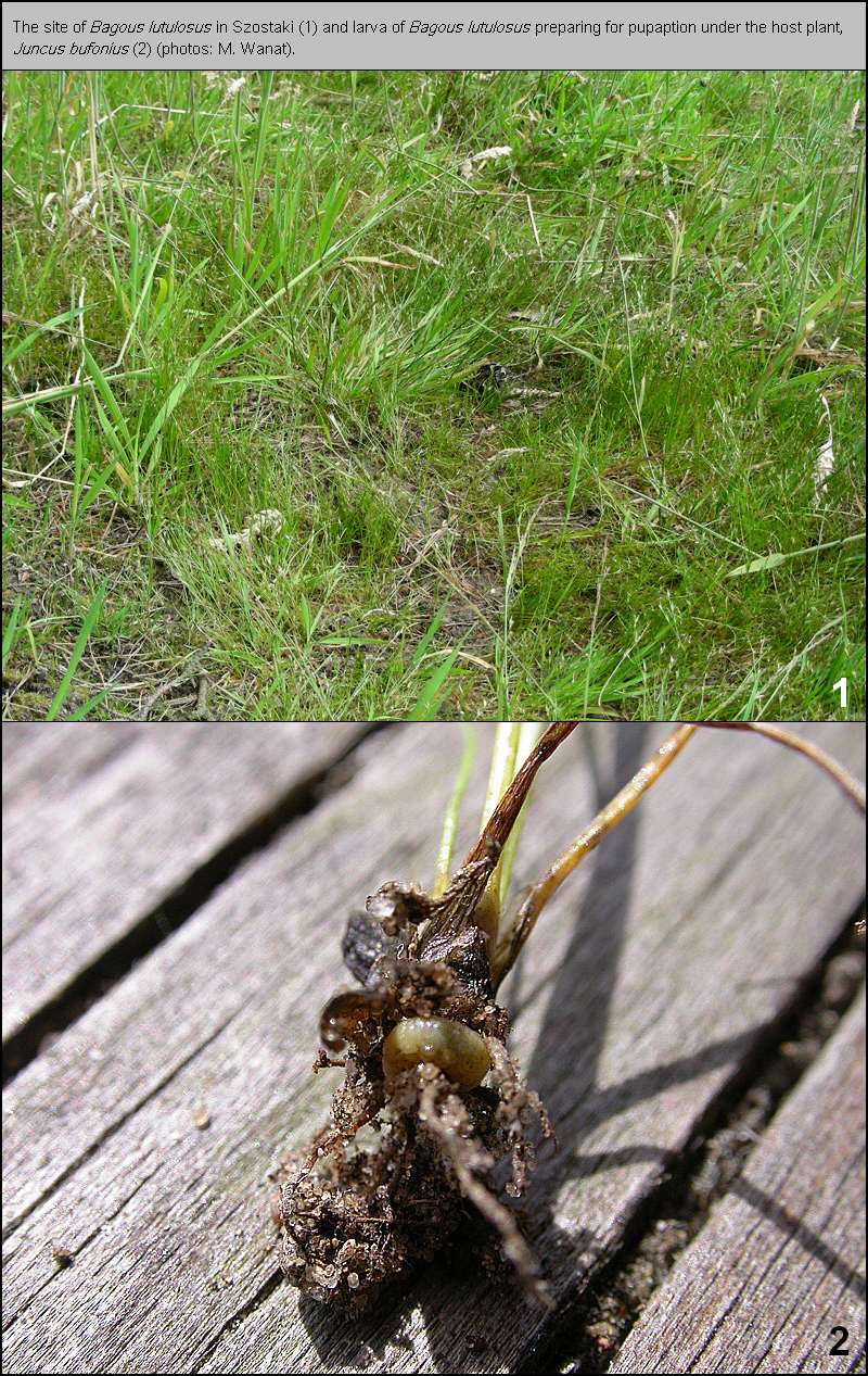 Central European Bagoinae are predominantly associated with aquatic and semiaquatic habitats and nearly all species develop in water or marsh plants [Dieckmann 1983] [Caldara & O’Brien 1998] [Sprick 2001]. Bagous lutulosus is known among few exceptions regularly found far from water reservoirs [Hoffmann 1954] [Smreczyński 1972], beside B. diglyptus Boheman, 1845, and even xerothermophilous B. aliciae Cmoluch, 1983 [Dieckmann 1983] [Szypuła 1995].