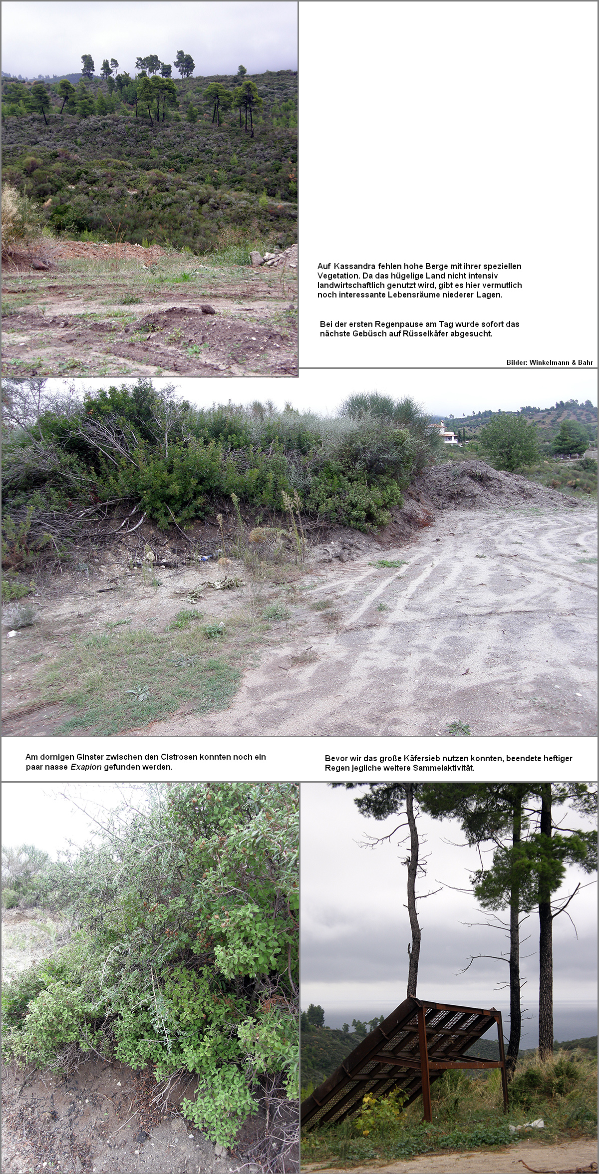 Kurzfristig entschlossen sich die beiden ersten Autoren, eine „Herbstexkursion“ durchzuführen, um das Artenspektrum zu einer Jahreszeit zu erforschen, in der nur wenige Sammelreisen erfolgen. Das Reiseziel war der nördliche Teil von Kassandra (Chalkidiki). In der Umgebung des Sani-Resorts (FO 1) [Tab. W70.1] [Tab. W70.2] sollten die ersten und auch die letzten Nachweise dieser fast gänzlich verregneten Reise erfolgen.