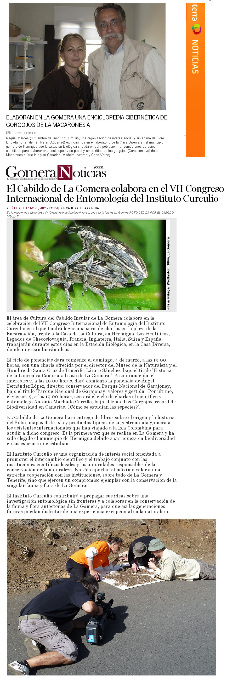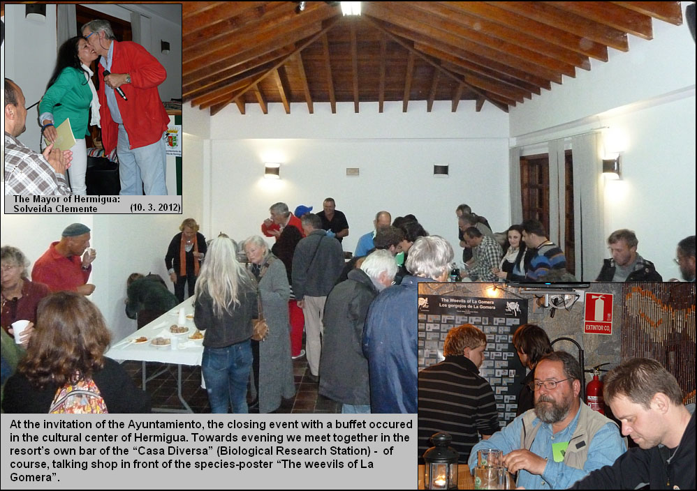 Besides the institutions on La Gomera already mentioned, we would like to express our very special thanks to Antonio Machado, who took over the the task of the PR work during the meeting, and Raquel Marcos & Norbert Bewernitz from the Casa Diversa in Hermigua (Las Nuevitas), who as perfect hosts of the Biological Research Station of the CURCULIO Institute ensured smooth operation during the events. I would like to thank also the many Spanish and German friends in Hermigua and Peter Sprick for the translation of the text. Adrian Fowles kindly revided the English text.