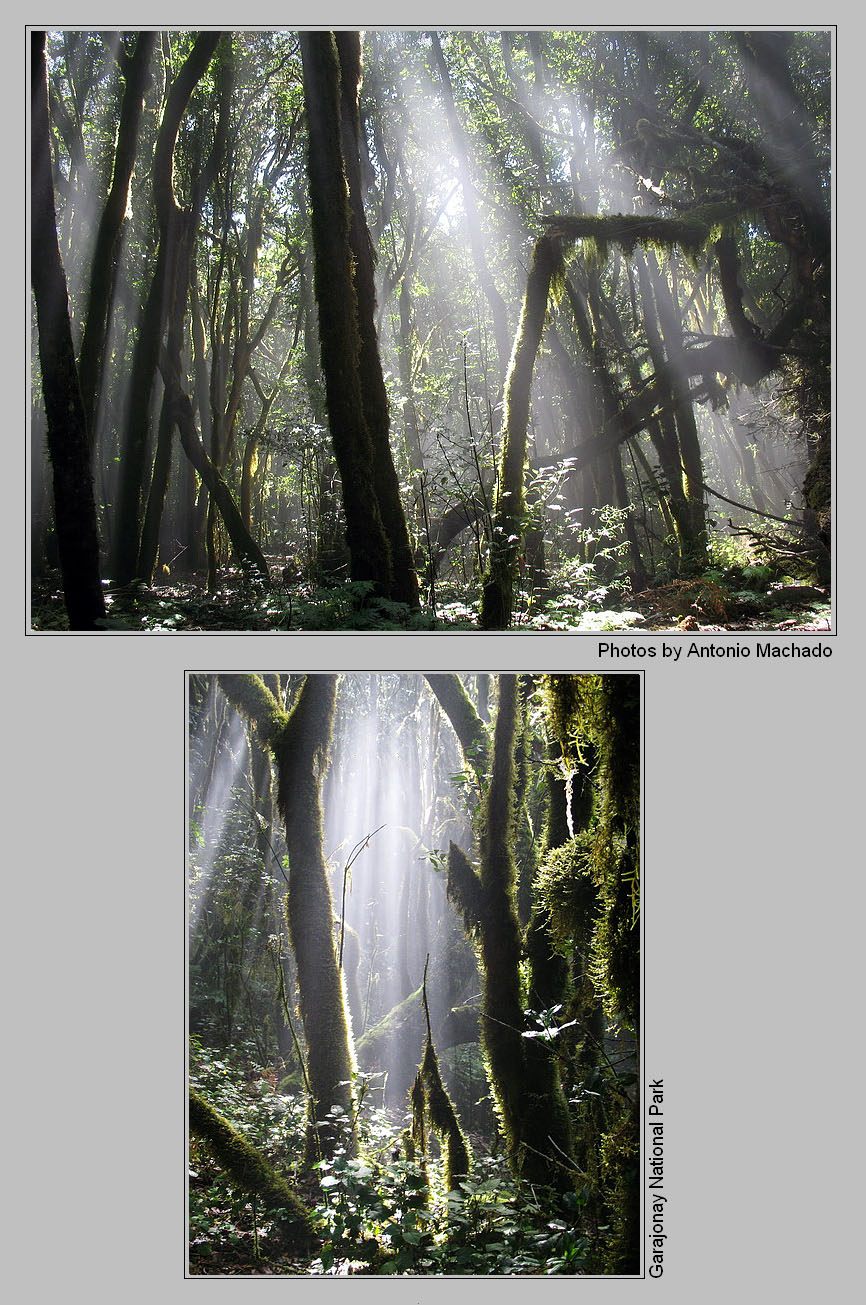 „At a short distance from the Saharan desert coast, along the summits of the Canary island of La Gomera, is found one of the most singular forests of Spain, the Garajonay National Park, listed as a World Heritage Site by UNESCO in the Natural Category. The persistent clouds and fog that frequently cover these mountains favour the survival of these ancient and splendid subtropical forests, known under the name of Canary Laurisilva or Canary laurel forest. This ecosystem is a relic from the Tertiary Age, extinct in the continent because of the climatic changes that occurred in the Quaternary. It is a natural refuge with an extraordinary number of endemic and endangered species. Nowadays, Garajonay National Park, with almost 4000 ha, is the best preserved remnant of this ecosystem.