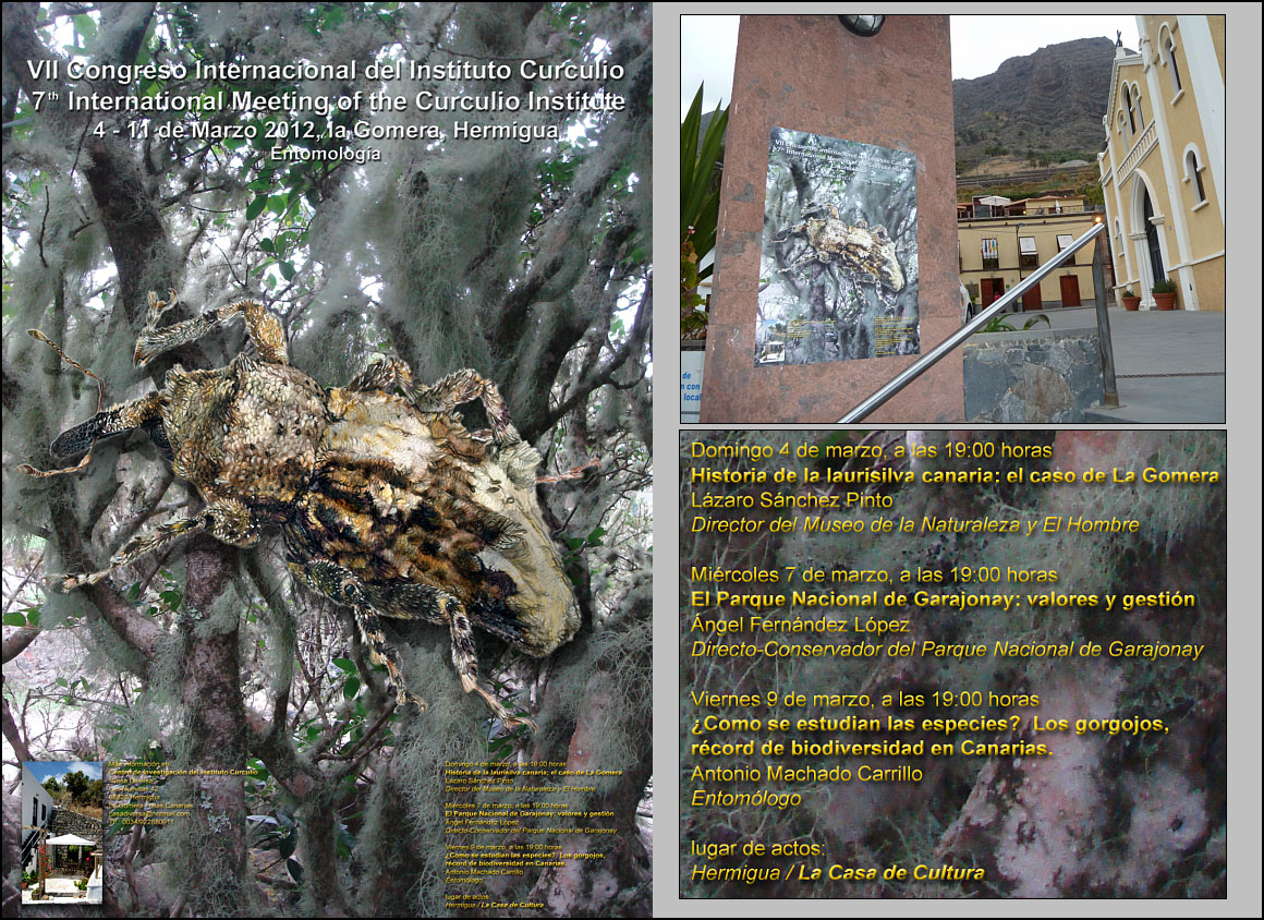 In December 2011, a delegation had arrived prior to the participants, to hang up the posters printed solely for this event throughout La Gomera [Fig. 77.5]. A few days before the opening of the International Meeting the first colleagues from Germany arrived in the beginning of March 2012. For several weeks before they had been collecting weevils in the North of Tenerife for the planned catalogue of Macaronesia. The first part „Die Curculionoidea La Gomeras“ was published on 1. December 2011 on the SNUDEBILLER 12 [Stüben 2012] [Fig. 77.6].