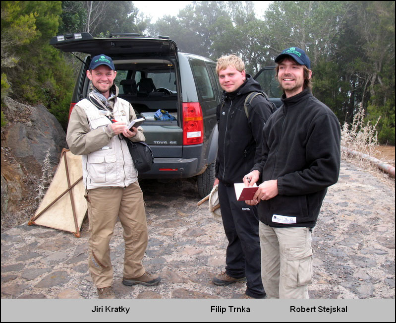 A database, supplemented by 29 first records of species from the island, for La Gomera was available (corrections to the La Gomera catalogue: see appendix 1). The participants who arrived during the next few days from France [Fig. 77.7], Czech Republic [Fig. 77.8], Spain [Fig. 77.9] and Germany [Fig. 77.10] could therefore be provided with essential information on species, localities and finding circumstances. Especially for this purpose, Alexandre Stüben designed a large poster (DIN A-1 format) with all 121 weevil species of La Gomera recorded up to this point in time [Fig. 77.11] (see appendix 2). The provision of this information, and a nearly complete reference collection of all Curculionoidea of La Gomera, gave the invaluable advantage each evening of being able to compare species collected during the event against those of the Biological Research Station with the available microscopes [Fig. 77.12]. Another benefit was the formation of small groups to collect with minimal impact on flora and fauna.