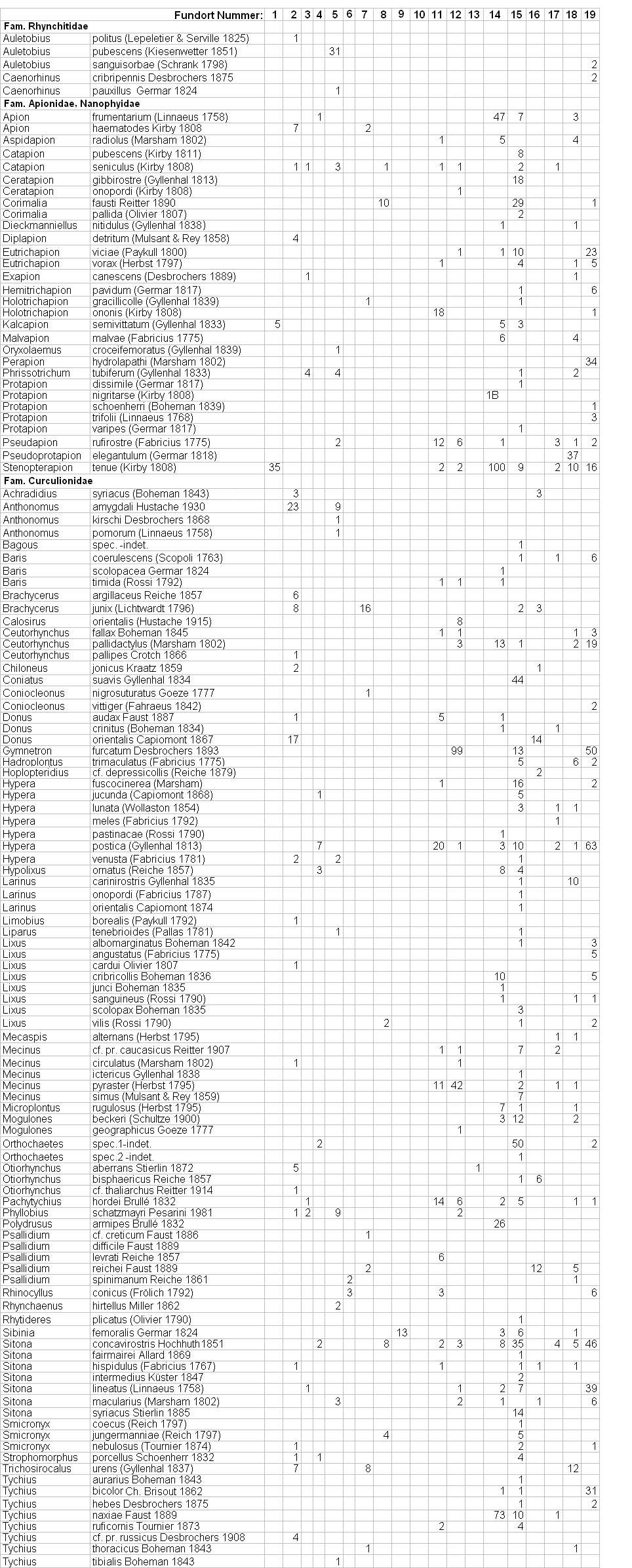 Vertreter der Gattungen Cionus, Cleopus und Gymnetron (Rhinusa, pars) gefunden wurde, was jedoch auch jahreszeitlich bedingt sein könnte, da die Arten der Verbascum-Zönose