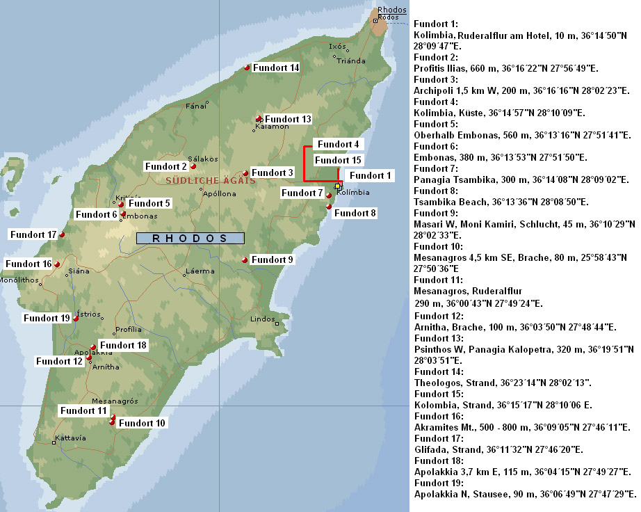 Die auf Rhodos nachgewiesenen 127